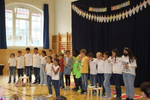 In diesem Schuljahr wurden 43 Erstklässler*innen eingeschult. Die Einschulung fand getrennt nach Klasse 1a und 1b in unserer Sporthalle statt, die für diese Feierlichkeiten geschmückt wurde. Nach einer kurzen Begrüßung eröffnete die Klasse 4a das Programm mit einem Step-Tanz und die Klasse 4b führte ein Theaterstück zum „kleinen Wir“ auf. Zum Abschluss traten die Viertklässler der Trommel-AG auf und alle erhielten für ihre Auftritte grandiosen Applaus. Anschließend gingen die Schulanfänger*innen mitsamt ihren Schulranzen und Schultüten mit ihren Klassenlehrkräften in die Klassenzimmer, wo sie ihre erste Schulstunde erlebten. Der Förderverein überbrückte die Wartezeit auf dem Schulhof mit einem kleinen Catering.